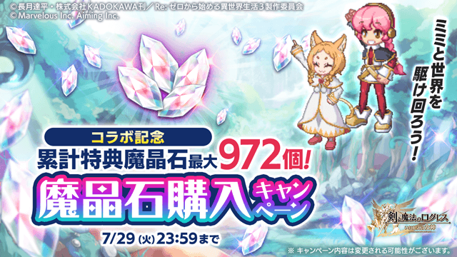 コラボ開催を記念して、ログインで魔晶石100個をプレゼントします。