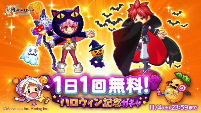 ※「1日1回無料!ハロウィン記念ガチャ」の利用回数は毎日0:00にリセットされます。