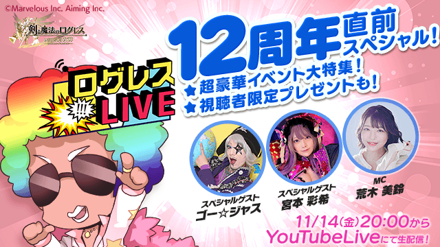【11/14(金)20:00放送】12周年目前!最新情報を「ログレスLIVE」でお届け!