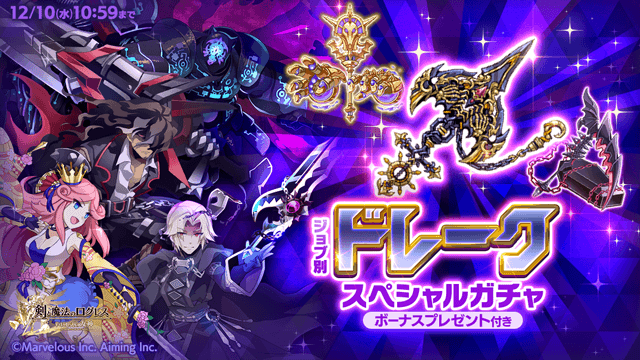 期間中、ガチャの「オススメ」タブにて「ジョブ別 ドレークスペシャルガチャ」を販売します。