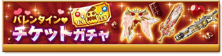バレンタインチケットガチャには、期間限定武器「アモール」や、「英霊」の古代機/覇剣/霊刀/滅剣などがラインナップ!