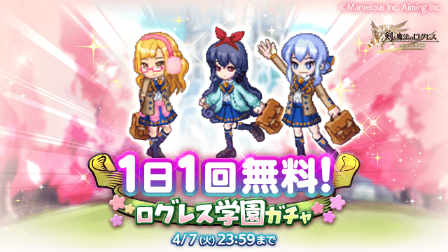 ※「1日1回無料!ログレス学園ガチャ」の利用回数は毎日0:00にリセットされます。