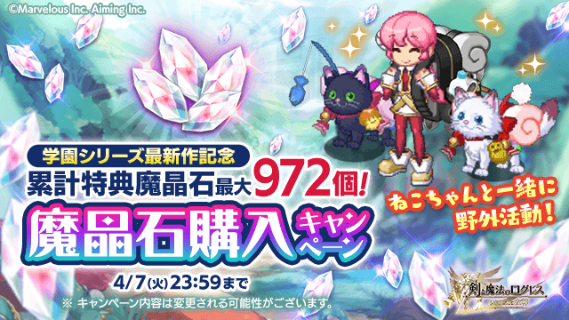 学園シリーズ最新作記念!期間中の魔晶石購入の合計金額に応じ、特典魔晶石や限定アバターがもらえるキャンペーンを開催します。