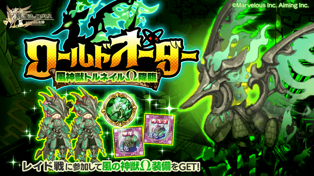 期間中、「ワールドオーダー 風神獣トルネイルΩ降臨」を開催します。